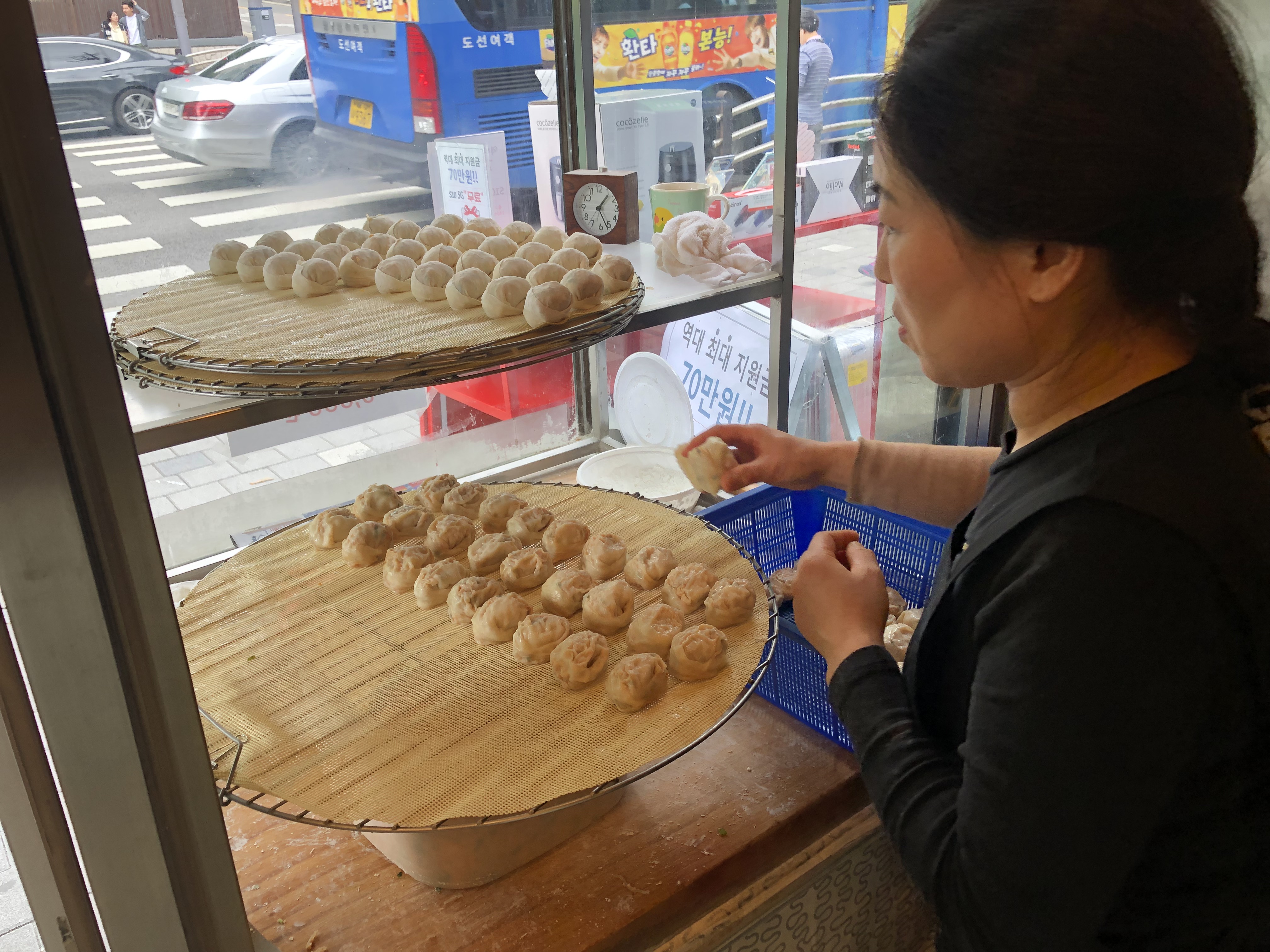 Варят пельмени на пару не окуная в воду, прямо на улице - запах только привлекает голодных клиентов.