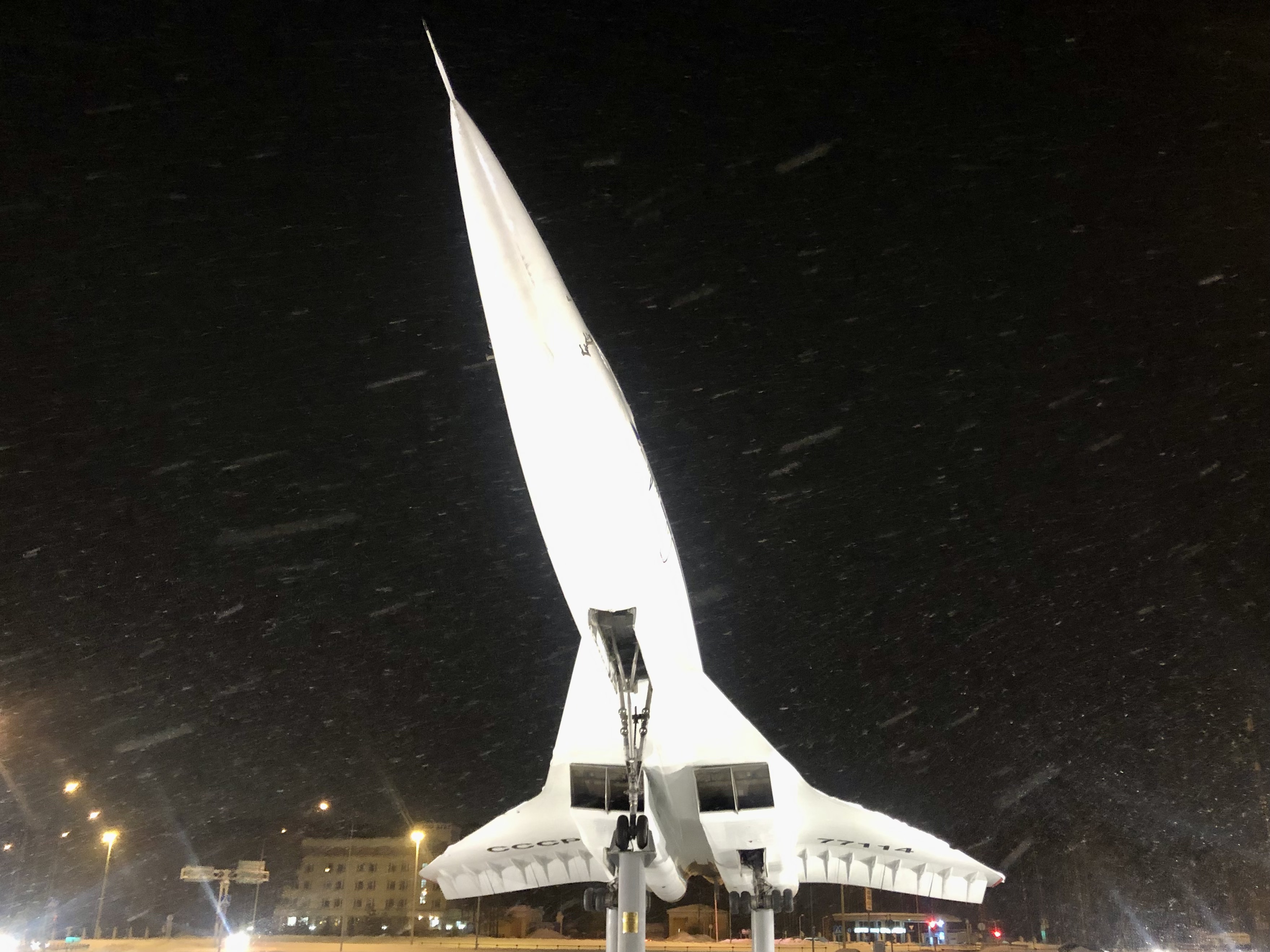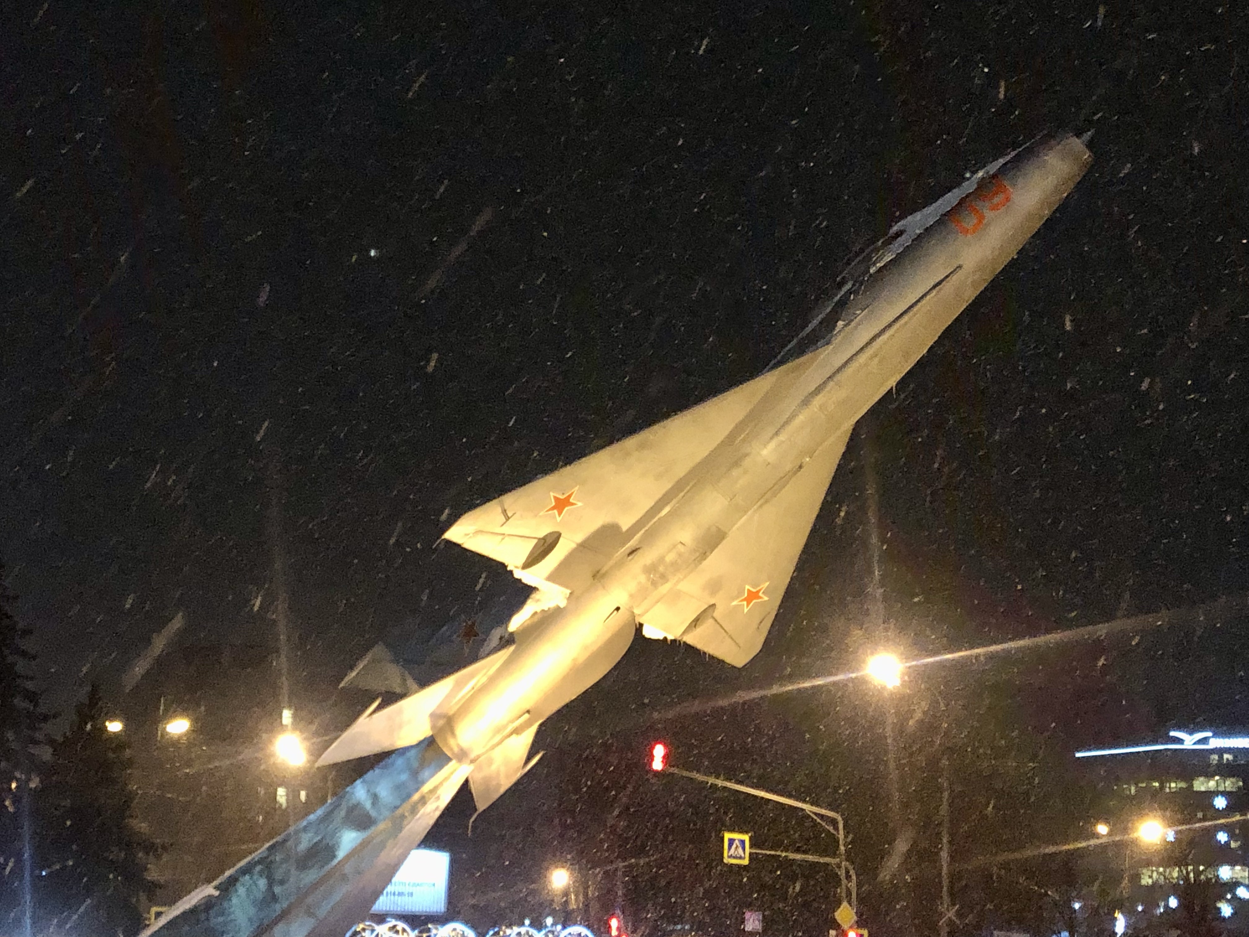 Жуковский встретил монументально: увидев Ту-144 на постаменте (один из двух сверхзвуковых пассажирских лайнеров в мире), я припарковался в неположенном месте, вышел из машины, поглазел на него и сфотографировал. К сожалению, изображение не передает ощущения мощи и величия самолета, которое чувствуется в живую, но это стоит увидеть. Дальше по дороге к милонге я заметил одно из зданий Центрального Аэрогидродинамического Института им Н. Е. Жуковского (ЦАГИ), градообразующего предприятия города. Когда я учился в МГТУ им. Баумана, то чуть не попал туда на стажировку (ЦАГИ есть комплекс недалеко от МГТУ). Ну а уже перед зданием, где проходит милонга стоит истребитель МиГ-21, его даже видно из окна!